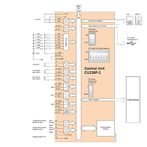 Схема соединений управляющего модуля серии CU240E-2