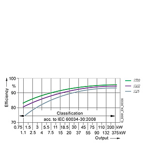 IE1 (Standard Efficiency) IE2 (High Efficiency) IE3 (Premium Efficiency) NEE (NEMA Energy Efficient according to NEMA MG Table 12-11) NPE (NEMA Premium Efficient according to NEMA MG Table 12-12) |