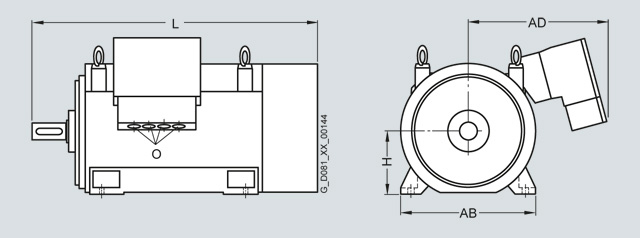 - Dimension designations according to DIN EN 50347 and IEC 60072.