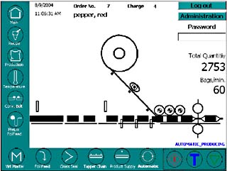 Режимы машины наглядно координируются в менеджере режимов работы соответствующем OMAC Pack ML (OMAC = Open Modular Architecture Controls). Чтобы проверить координацию агрегатов машины визуально имеется для непрерывных упаковочных машин функция «толчковый режим с синхронным движением».