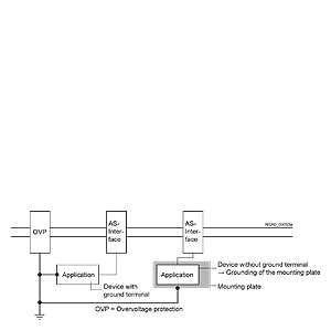 Модуль используется для защиты отдельных устройств или секций AS-интерфейса от коммутационных перенапряжений, или перенапряжений, вызванных удаленными ударами молнии. Для защиты от прямых ударов молнии необходимо применение дополнительных технических средств. Подключение к AS-интерфейсу производится через модули связи FK-E или PG-E. При использовании EEMI интерфейса защита распространяется на желтый и черный кабель. Для обеспечения защитных функций модуль должен быть подключен к контуру заземления с низким сопротивлением. Подключение производится желто-зеленым кабелем с оболочкой, стойкой к воздействию масел. Заземление модулей и защищаемого оборудования должно выполняться через общий контур заземления. В защищаемом оборудовании с полной изоляцией должны заземляться монтажные конструкции. Модуль защиты от перенапряжений является пассивным модулем и не требует задания сетевого адреса. Его корпус обеспечивает степень защиты IP 67.