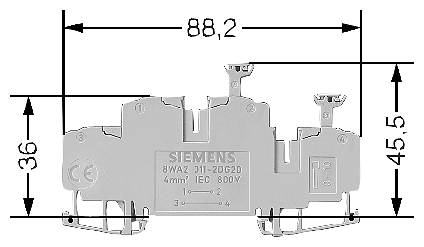 • номинальное напряжение изоляции 800 В • конструктивная ширина 6,2 мм • высота клеммы 45,5 мм • длина клеммы 88,2 мм