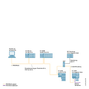 Проектирование Конфигурирование коммуникационного процессора CP 342-5 FO выполняется с помощью пакета NCM S7 для PROFIBUS. NCM S7 является составной частью пакета STEP 7 от версии 5.0 и выше. Параметры настройки CP 342-5 FO записываются в память центрального процессора S7-300 (STEP 7 от версии 5.0 и выше). Это позволяет сохранять параметры настройки при перебоях в питании контроллера, а также производить замену коммуникационного процессора без повторного конфигурирования вновь устанавливаемого модуля. Запуск центрального процессора будет автоматически сопровождаться передачей всех параметров настройки в коммуникационный процессор. Конфигурирование и программирование всех сетевых станций SIMATIC S7 может выполняться дистанционно через сеть PROFIBUS. Функциональные блоки поддержки протокола PROFIBUS DP включены в стандартную библиотеку STEP 7. Функциональные блоки поддержки функций S5-совместимой связи (SEND/RECEIVE), а также функций S7-клиента помещены в библиотеку SIMATIC NET пакета NCM S7. Конфигурация оптического PROFIBUS DP с CP 342-5 FO