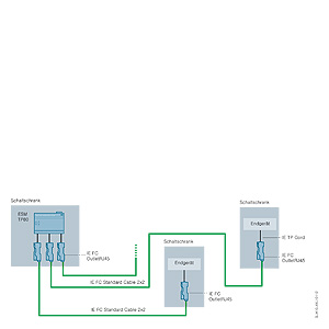 Соединитель Industrial Ethernet FC RJ45 подключается непосредственно к Industrial Ethernet FC кабелю. Через его гнездо RJ45 с помощью TP кордов и кабелей RJ45 к сети Industrial Ethernet производится подключение различных сетевых компонентов и терминалов.