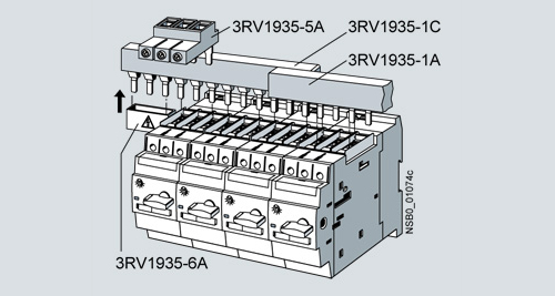 Адаптеры для сборных шинДля компактного монтажа силовых автоматических выключателей и для быстрого создания недорогих схем питания выключатели устанавливаются с помощью адаптеров прямо на системы сборных шин с межцентровыми расстояниями 40 мм и 60 мм. Выключатели крепятся защелками на адаптерах и подключаются на стороне входа. Затем этот подготовленный узел насаживается на системы сборных шин и механически и электрически соединяется с ними. Силовой автоматический выключатель SIRIUS и фидерные сборки с адаптерами, закрепленные защелками на сборных шинах |