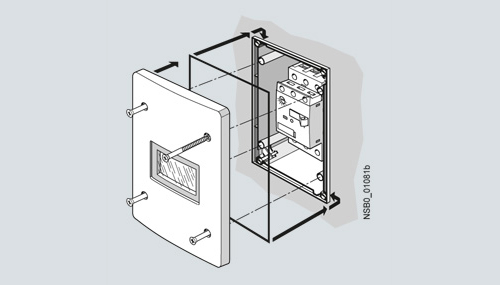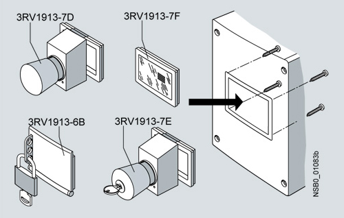 Во многих случаях необходимо управлять силовыми автоматическими выключателями в любых корпусах. Для этого поставляются передние панели с защитной мембраной для выключателей типоразмера SOO и с поворотным приводом для выключателей типоразмеров от SO до S3. Передние панели для типоразмера SOO имеют крепежную рамку, в которой выключатели могут крепиться защелками. Для передних панелей типоразмеров от SO до S3 поставляется крепежная рамка под силовой автоматический выключатель типоразмера SO.