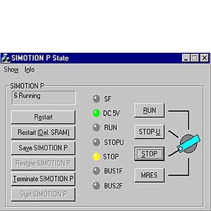 SIMOTION P - это свободно программируемый PC с встроенной Motion Control системой с масштабируемой функциональностью. Стандартные технологические функции интегрированы в SIMOTION ядро и поставляются вместе с устройством. Функциональность может расширяться загружаемыми пакетами технологии. Автоматически регулируемое по положению, управление движением для сервоприводов • Приводы с цифровым интерфейсом заданного значения: - профиль PROFIDrive, версия 3 (с тактовой синхронизацией) • Приводы с аналоговым интерфейсом заданного значения: - 4 привода - 4 датчика - бинарные входы и выходы Пакеты технологии Особенность SIMOTION - это расширяемость функциональности операционной системы путем загрузки пакетов технологии, как например: • Позиционирование - Position • Равномерный ход / электронный редуктор - Gear • Дисковые кулачки - Cam • Терморегулятор - TControl Этим достигается хорошая масштабируемость функциональности, а также производительность процессора и объем памяти используются оптимально. Производительность • Очень короткое время обработки команд открывают новые возможности применения от среднего до высшего диапазона мощностей. • Аппаратная поддержка арифметики с плавающей точкой позволяет эффективно применять сложные математические функции. Проектирование/Программирование/Параметрирование Для всех шагов инжиниринга, от проектирования до параметрирования и программирования, проверки и диагностирования имеется мощный и дружественный к пользователю инструмент инжиниринга SIMOTION SCOUT. Затраты на ознакомление и обучение сокращается благодаря графическому представлению действий оператора со стороны системы посредством технологических диалогов и ассистента(программы-мастера), а также наличию текстовых и графических языков программирования. Обслуживание и наблюдение (HMI) Для обслуживания и наблюдения может использоваться: • Панель оператора отдельная или установленная непосредственно на блоке • SIMOTION P система Наше программное обеспечение визуализации SIMATIC ProTool/Pro настроено на SIMOTION P систему и делает возможной комфортабельную, простую реализацию Ваших функций обслуживания и наблюдения. Непрерывное представление данных позволяет просто связывать переменные процесса с Вашими объектами визуализации. Конечно, применимы также панели визуализации от любых производителей на основе операционной системы Microsoft Windows. Связь с SIMOTION P систему происходит посредством сервера OPC. SIMOTION ядро – поддержка HMI SIMOTION ядро содержит уже следующие комфортабельные функции HMI: • Обмен данными HMI • Диагностирование Старт/Стоп/Безопасность Программное обеспечение ядра SIMOTION P не имеет естественно никаких кнопок или переключателей для изменения ее рабочих состояний (ПУСК / ОСТАНОВ). Эту задачу решает монитор программного обеспечения (смотри рис. программное обеспечение - монитор), который обслуживается при помощи клавиатуры или мыши. Монитор программного обеспечения Этот монитор визуализирует рабочие состояния во время запуска и при работе. Дополнительные функции - например, загрузка прикладных программам или SIMOTION P системы. При завершении важные данные (Reteindaten) хранятся в течение времени отключения источника питания на плате IsoPROFIBUS, так что при повторном включении расчеты могут быть сразу продолжены с последними актуальными данными. Устойчивость SIMOTION ядра не за