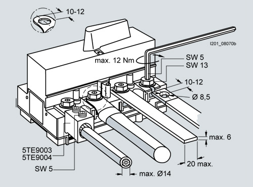 Присоединение 5TE1 .3 и 5TE1 .4 выключателей, 160 A и 200Конструкция