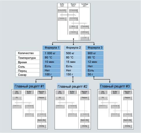 Flat recipesFlat recipes are suitable for simple applications with only a few units. With these recipes, the units are directly assigned to the recipe functions within the recipe procedure. Hierarchical recipes according to ISA-88.01Hierarchical recipes according to ISA-88.01 SIMATIC BATCH also supports hierarchical recipes in accordance with the ISA-88.01 standard. SIMATIC BATCH and SIMATIC PCS 7 form a functional unit that fully covers the models described in the standard. The hierarchical recipe structure is mapped on the plant module as follows: