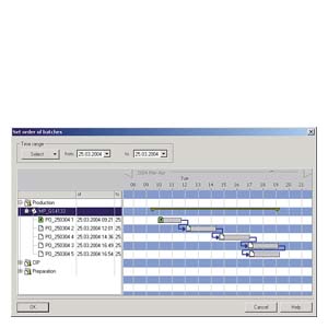 Batch planning and control are supported in a user-friendly manner and simplified, thanks to special displays such as the order category list, production order list, batch planning list, batch status list, or batch results list. All batches including their unit allocation can be clearly presented in a combination of Gantt diagram and table. Time conflicts or those resulting from multiple allocation of units are identified by symbols. Time conflicts can be eliminated simply by shifting the associated batches in the Gantt diagram. SIMATIC Batch APIThe SIMATIC BATCH API Application Programming Interface, which is offered as an expansion component, is an open interface for customer-specific extensions. It provides users with access to data and functions of SIMATIC BATCH and enables programming of special applications for specific sectors or projects. |