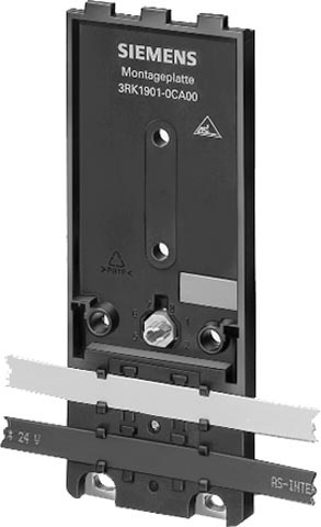 Монтажная плата содержит профилированный паз для укладки кабеля AS-Interface и может крепиться на плоские поверхности винтами или устанавливаться на профильную шину DIN.