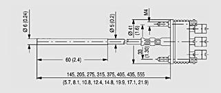 Взрывозащищенная измерительная вставка для термометров сопротивления, размеры в мм (дюймах) |