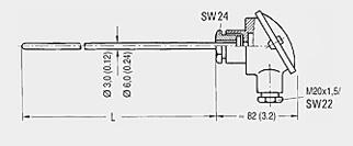 Термопара в оболочке с соединительной головкой, форма B, из легкометаллического сплава, размеры в мм (дюймах) |