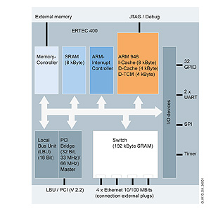 • D-кэш емкостью 4 Кбайт, I-кэш емкостью 8 Кбайт, D-TCM емкостью 4 Кбайт