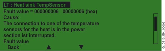 При превышении порога температуры вырабатывается сообщение. Если рост температуры продолжается, производится уменьшение тока или уменьшение несущей частоты ШИМ или отключение привода, обеспечивая нормализацию теплового состояния. При восстановлении нормальных условий (например при улучшении вентиляции) нормальное функционирование восстанавливается автоматически.