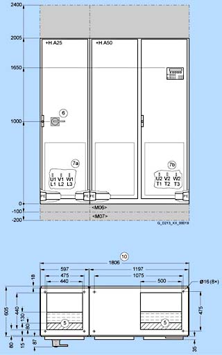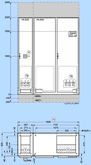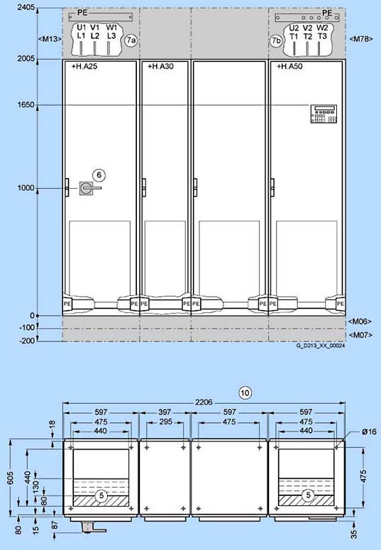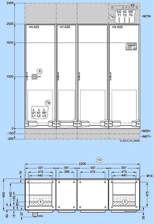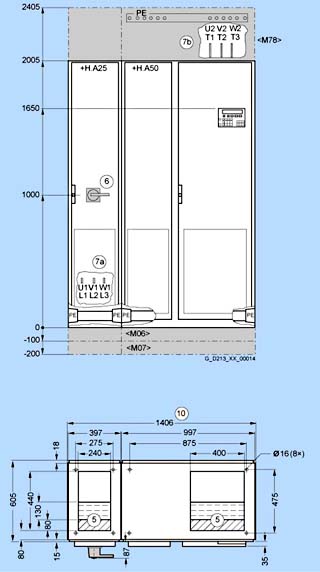 Ввод питания снизу, Двигатель подключен сверху (опция M78)