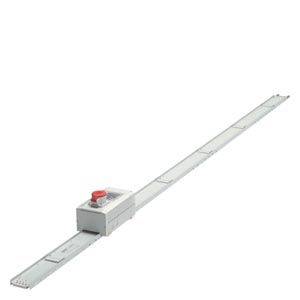 Прямые секции доступны для заказа 2 и 3 м длины. Металлическая оболочка окрашена в светло-серый цвет (RAL 7035). Шинопровод состоит из 4-х шин для L1, L2, L3, N (алюминиевые шины, медные на 160 A; покрытые серебром медные контакты). Оболочка шинопровода используется как проводник PE. В одном типоразмере пять номинальных токов: 40 A, 63 A, 100 A, 125 A и 160 A. Точки ответвления располагаются с двух сторон с шагом 0.5 или 1 м. Две или четыре точки ответвления на 2-х метровой секции, и три или шесть на 3-х метровой. Точка ответвления имеет защиту от касания пальцем к токоведущим частям. Она автоматически открывается и закрывается при установке и снятии ответвительной коробки. Метод соединенияКомпенсатор линейного расширения встроен с стыковочный узел. |