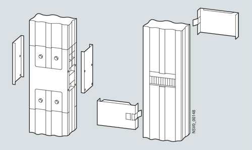 Защитные кожухиОни обеспечивают только механическую защиту шинопровода при прохождении через стену или потолок. Защитные кожухи могут быть модифицированы. BD2-400-D и BD2-1250-D: Защитный кожух до 400 A или до 1250 A Концевые фланцыКонцевые фланцы требуются для завершения линии шинопровода. Доступны два типоразмера. Слева: BD2-400-FE: Концевой фланец до 400 A Справа: BD2-1250-FE: Концевой фланец от 500 до 1250 A Аксессуары для IP54Монтажное положение на ребро Более высокая степень защиты достигается за счет установки дополнительных верхних крышек в точках стыковки. Слева: BD2-HF: Фланец для точки стыковки между двумя прямыми секциями Справа: BD2-HFE: Фланец для точки стыковки между прямой секцией и концевым фланцем Монтажное положение в плоскости Более высокая степень защиты достигается за счет установки дополнительных верхних крышек в точки стыковки и отводные точки подключения. Слева: BD2-FF: Фланец для точки стыковки между прямыми секциями Справа: BD2-FFE: Фланец для точки стыковки между прямой секцией и концевым фланцем BD2-FAS: Фланец для отводной точки подключения Вертикальное монтажное положение Более высокая степень защиты достигается за счет установки дополнительных крышек на все точки стыковки и отводные точки подключения (спереди и сзади) Слева: BD2-...-VF: Фланец для точки стыковки между двумя прямыми секциями Справа: BD2-FAS:Фланец для отводной точки подключения Аксессуары для крепленияКрепежный кронштейн Универсальный крепежный кронштейн может использоваться для для крепления на ребро и в плоскости для всех вариантов. BD2-400-BB и DB2-1250-BB: Крепежный кронштейн до 400 А или до 1250 A Дистанционный кронштейн Дистанционный кронштейн для компенсации допустимых отклонений между прямой секцией и стеной или потолком. Дистанционный кронштейн скользит в BD2-...-BB крепежном кронштейне и фиксируется в нем с помощью винтов. Для вертикальной установки линии BD2, он также может использоваться для промежуточной установки. BD2-BD: Дистанционный кронштейн Промежуточные втулки Промежуточные втулки компенсируют неровность стены и потолка между блоком подвода питания и прямой секцией. Промежуточные втулки защелкиваются на крепежный кронштейн. BD2-DSB: Промежуточная втулка Удерживающие элементы для вертикальных линий Они включают в себя элементы крепления на стену и аксессуары крепления к потолку. Удерживающие элементы регулируемые для компенсации неровностей стен. BD2-BWV: Элемент крепления на стену для прямой секции и концевого блока подачи питания При переходе от горизонтальной линии в вертикальную, крепеж к стене должен использоваться как поддерживающий элемент. BD2-BDV: Элемент для крепления линии шинопровода к потолку BD2-BVF: Элемент для крепления линии шинопровода к стене на каждом клемном терминале |