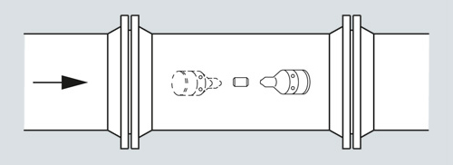 При наличии более одного колена просьба проконсультироваться на Siemens. Монтаж в полностью заполненную трубу