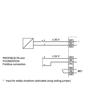 Электрическое подключение 2-х проводного прибора (6DR50.. и 6DR51..)Приборы типа 6DR50.. и 6DR51.. работают по 2-х проводной схеме. Электропневматический позиционер SIPART PS2, входная схема для 6DR50.. и 6DR51.. Электрическое подключение прибора PROFIBUS-PA (6DR55..) и приборов Foundation-Fieldbus (6DR56..)Электропневматический позиционер SIPART PS2 PA и SIPART PS2 FF, входная схема для 6DR55.. и 6DR56.. Электрическое подключение 2-х, 3-х и 4-х проводного прибора (6DR52.. и 6DR53..)Приборы типа 6DR52.. и 6DR53.. могут работать по 2-х, 3-х и 4-х проводной схеме. Электропневматический позиционер SIPART PS2, пример подключения для коммуникации через HART для 6DR52.. Электропневматический позиционер SIPART PS2, входная схема для 6DR52.. |