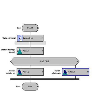 Соответствующий инструмент, например программа для конфигурирования кулачков или приводов вызывается из программы централизованного управления проектом.