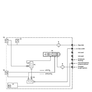 Газовые и электрические соединения на задней стороне (портативная версия: ввод газа-пробы спереди).