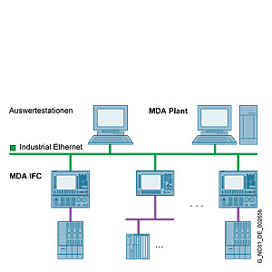 На каждую панель управления может быть зарегистрировано макс. 8 агрегатов (лицензии MDAIFC). На MDACell в сумме может быть обработано макс. 16 станков/агрегатов. Для решений с большим количеством мест обработки или для подключения более 16 станков/агрегатов нужно запросить расширенное специфическое для проекта решение MDAPlant. В нем доступны и дополнительные обработки, к примеру, время такта. Интеграция систем MES/ERP также может быть реализована с MDAPlant. Каждый MDAPlant может обрабатывать от 50 до 70 станков/агрегатов. На каждую панель управления: nxMDAIFC (n ≤ 8).
