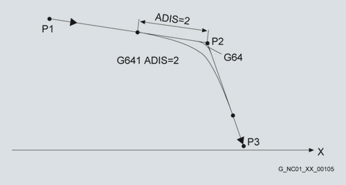 Вывод вспомогательных функций может происходить, на выбор, либо со снижением скорости и подтверждением PLC до следующего кадра, либо до и во время движения без снижения скорости и без задержки смены кадра. Кадры программы тогда отрабатываются без задержки и подтверждения.