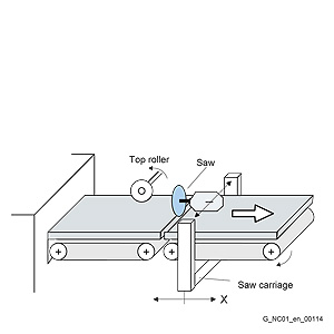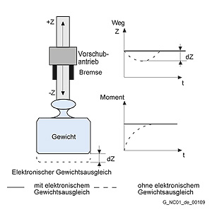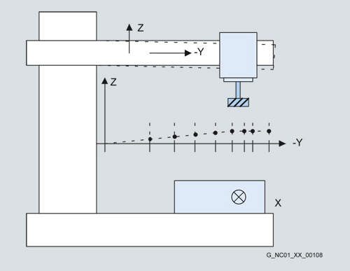 С помощью этой функции на жесткий упор могут наезжать,например, задние бабки или пиноли, чтобы зажимать заготовки. Давление зажима определяется в основной программе. Возможен наезд на жесткий упор для нескольких осей одновременно и параллельно движению других осей.