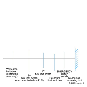 PLC может осуществить другое ограничение оси, активизируя второй программный концевой выключатель через сигнал интерфейса PLC. Это уменьшение рабочей области может стать необходимым, например, когда пиноль выходит в позицию. Изменение немедленно активируется, и первый программный выключатель больше не действует.
