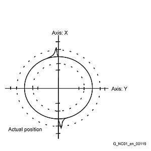 При передаче силы между подвижной частью станка и его приводом (напр., шариковинтовая пара) возникают, как правило, небольшие люфты, т.к. следствием полностью беззазорной настройки механики был бы слишком сильный износ станка. При осях/шпинделях с косвенными измерительными системами механический люфт ведет к искажению траектории пути. При реверсировании, например, одна ось обводит слишком большое или слишком малое количество люфтов.