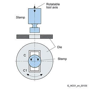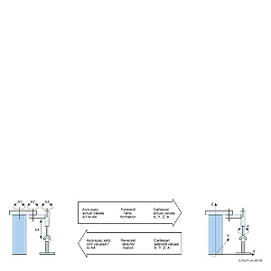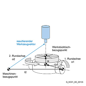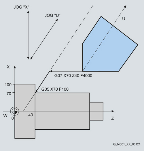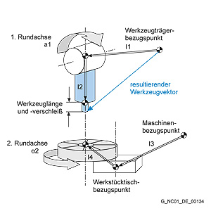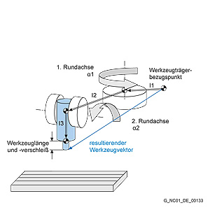 Задействованные в соединении оси определяются через осевой машинный параметр, который актуализируется клавишей RESET. Тем самым, существует возможность заново определять осевые пары во время режима работы и включать/ выключать через языковую команду ЧПУ.