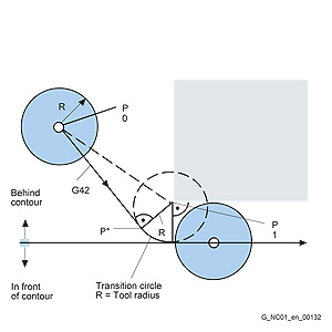 Вместе с вызовом коррекции траектории инструмента G41/G42 должна вводится рабочая плоскость, чтобы система управления могла корректировать радиус и длину инструмента.