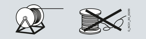 Разматывание кабелей с катушки должно осуществляться без скручиваний, т.е. необходимо раскручивать кабели, а не снимать витками через буртик катушки.