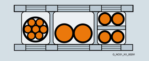 Для обеспечения продолжительного срока службы кабелей в подвижном коробе при хранении необходимо разделять кабели из различных метриалов. Посредством равномерного распределения разделителей необходимо обеспечить отсутствие изменение позиции хранящегося кабеля. По возможности распределять кабели симметрично в соответствии с их весом и размерами. Кабели с большой разницей в наружном диаметре должны разделяться специальными перемычками.