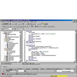 Инжиниринговая система SCOUT позволяет решать все задачи Motion Control-, PLC- и технологического программирования в единой системе Motion Control SIMOTION и включает в себя все необходимые инструметы: от средств параметрирования и ввода в эксплуатацию приводов и программирования контроллера до инструментов отладки и диагностирования. Модули управления SIMOTION D имеют базовые функции программирования в соответствии с IEC 61131 (Kernel). С помощью дополнительных технологических пакетов базовая функциональностиможет расширяться такими функциями как, например, позиционирование, синхронное движение, нелинейные кулачки и дополнительные каналы регулирования температуры. Эти технологические функции наглядно представляются в виде функциональных блоков, параметры которых можно адаптировать к конкретной задаче. Существует множество готовых технологических блоков которые можно свободно комбинировать, изменять и параметрировать. Дополнительно технологические блоки имеют программные интерфейсы, позволяющие легко инегрировать их в программу пользователя. Язык программирования высокого уровня Структурированный текст (ST) предоставляет все языковые средства в форме ко- • функций вычислений, • структур управления, • обработки периферийных устройств. При использовании технологического пакета управления движением расширяется диапазон доступных команд за Эти разделы могут состоять из следующего: • программы, назначенной к уровню исполнения реального времени, • функционального блока с выделенной памятью • функции без выделенной памяти. Функциональные блоки и функции не назначаются уровню исполнения реального времени. Они вызываются из прикладной программы. Блок-схема управления движением (MCC) может использоваться для формулирования процесса работы машины графически Прежде всего, MCC поддерживает простое описание последовательности движений многоосевых машин посредством эф- Для управления машин доступны различные команды, например, при выполнении условия, могут быть прочитаны или запи- Все команды доступны на панелях инструмента (отсортированы согласно функциям) и автоматически устанавливаются в блок-