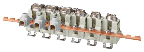- NEOZED керамические цоколи на трехфазной шине с вилочковыми контактами.