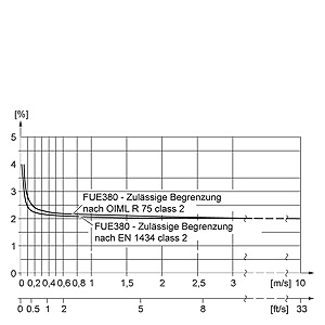 SITRANS FUE380 соответствует требованиям Ef = ±(2 + 0.02 qp/qi) max. ±5%, в соответствии с EN 1434 и OIML R75, класс 2 версия 1. июля 2002