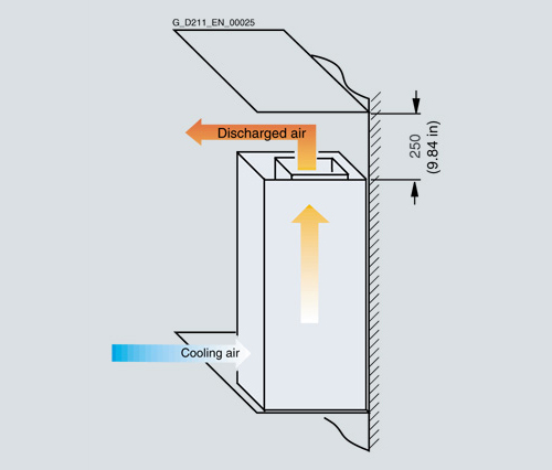 Обязательный минимум зазоров при установкеВентиляционные зазоры для Сенсорных и Терминальных Модулей Сенсорные и Терминальные Модули могут быть установленные в ряд друг за другом. При установке на стену, сетевым дроселям и сетевым яильтрам требуется вентиляционное пространство 100 мм (3,94 дюйма) сверху и снизу соответственно. Вентиляционные зазоры для компонентов формата blocksize При установке в ряд нескольких устройств, минимальный боковой зазор между Силовыми Модулями должен соответствовать заданному значению в зависимости от определенного типоразмера оборудования. Силовые Модули типоразмеров FSA, FSD, FSE и FSF вплотную друг у другу. Вентиляционные зазоры для компонетов формата booksize с внешним охлаждением Сетевые Модули от 5 кВт до 55 кВт Активные Сетевые Модули 80 кВт и 120 кВт Вентиляционные зазоры для компонет формата booksize с внешним охлаждением Вентиляционные зазоры для компонентов формата шасси Основные Сетевые Модули