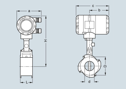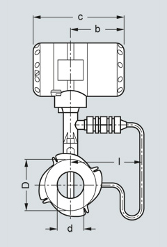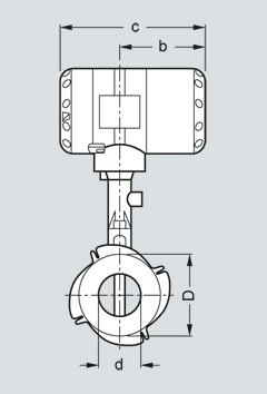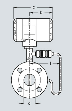 Фланцевая версия, вид сбоку, b = 105 мм (4.13 дюймов), c = 179 мм (7.05 дюймов)