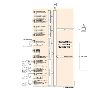 Схема подключения для блоков управления CU240D DP и CU240D DP‑F Схема подключения для блоков управления CU240D PN и CU240D PN‑F |