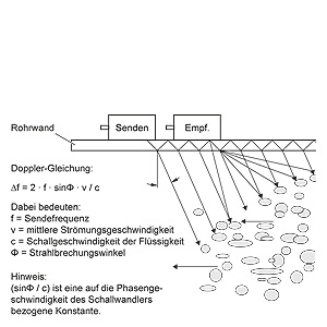 Принцип действияСистема SITRANS FUS1010 - это ультразвуковой измеритель на основе времени прохождения, обеспечивающий исключительные показатели благодаря бесконтактному подходу с подключением clamp-on. Ультразвуковые преобразователи передают и принимают акустические сигналы непосредственно через стенку существующей трубы, где угол отражения жидкости определяется законом Снеллиуса об отражении. Преобразователь с подключением сlamp-on, смонтированный в конфигурации с отражением Угол отражения луча вычисляется следующим образом: sin Ө = c / Vϕ c = Скорость звука в жидкости Vϕ = Фазовая скорость (константа в стенке трубы) Расходомер автоматически компенсирует любые изменения скорости звука в жидкости (или угол луча) в ответ на изменения в среднем времени прохождения между преобразователями A и B. Путем вычитания вычисленного фиксированного времени (внутри преобразователя и стенок трубы) от измеренного среднего времени прохождения, измерительный прибор получает требуемое время прохождения в жидкости (TFluid). Звуковые волны, распространяющиеся в направлении движения потока (TA,B) поступают раньше, чем звуковые волны, распространяющиеся в противоположном направлении (TB,A). Эта разница во времени (Dt) используется для вычисления линейно интегрированной скорости потока (v), как показано в следующем уравнении: v = Vϕ / 2 · Δt / TFluid Когда скорость потока определена, необходимо определить число Рейнольдса для жидкости (Re), чтобы надлежащим образом Re = Di · v / visc Q = K(Re) · ( π / 4 ·Di2 ) · v v = Скорость потока visc = μ / ρ = (динамическая вязкость / плотность) K(Re) = Компенсация профиля потока Рейнольда Во всех ультразвуковых расходомерах, контактирующих с веществом постоянные измерительного прибора конфигурируются на Измерительыне приборы SITRANS с подключением Clamp-On, включающие измерение температуры, могут быть Типы ультразвуковых преобразователей Для использования с расходомером SITRANS FUS1010 может быть выбран один из двух основных типов преобразователей Второй тип преобразователя это патентованный преобразователь WideBeam (широколучевой, названный высокоточным), который использует стенку трубы как своего рода громкоговоритель для оптимизации соотношения сигнал/шум и обеспечения более широкой области для вибраций. Это делает этот тип преобразователя менее чувствительным к каким-либо изменениям в текущей среде. Преобразователь WideBeam разработан для стальных труб, но может также использоваться с алюминиевыми, титановыми и Автоматическая коррекция дрейфа нуля (ZeroMatic Path™) При установке преобразователей WideBeam в режиме отражения (“Reflect”) в показанной ниже конфигурации, звуковой сигнал распространяется по двум различным путям между преобразователями A и B. Один путь “ACB” проходит через стенку трубы и жидкость, тогда как путь “AB” не проходит через текучую среду. Этот второй путь дает измерительному прибору опорный сигнал, который полностью независим от величины расхода, и поэтому может использоваться как мера “рассогласования” преобразователя. Путем непрерывного анализа этого сигнала стенки трубы расходомер FUS1010 может динамически корректировать ошибки в расходе, вызванные дрейфом нуля. Многоканальные расходомеры Для улучшенного усреднения профиля потока, резервирования или улучшения экономических показателей, расходомеры Clamp-On могут поставляться с 1 или 2 измеритель