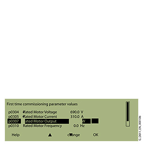 Для «Быстрого ввода в эксплуатацию» требуется ввести только 5 (пять) параметров электродвигателя: номинальная выходная мощность, частота вращения, номинальный ток, напряжение и частота сети. Эти данные можно получить на шильдике электродвигателя и, затем, ввести вручную с помощью краткого меню, отображаемого на дисплее.