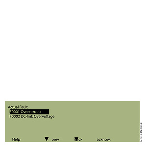 Любые происходящие Аварийные предупреждения отображаются мигающим желтым светодиодом «ALARM»; любые происходящие Аварийные сбои/отлючения отображаются горящим красным светодиодом «FAULT». В строке состояния дисплея при этом появляется дополнительное справочное текстовое сообщение о причине.