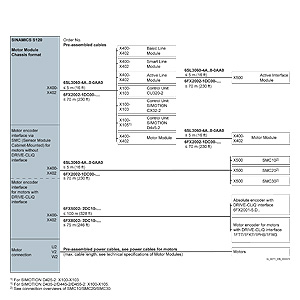 Обзор подключений для сетевых модулей и модулей двигателя в формате шассиКабели DRIVE‑CLiQтипа 6SL3060‑4A❑❑0‑0AA0, необходимые для стандартной конфигурации, входят в объем поставки сетевых модулей и модулей двигателя. В этом случае модули необходимо устанавливать непосредственно рядом друг с другом в одну линию. |