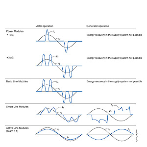 Активные сетевые модулиНапряжение цепи DC Ud является настраиваемым значением (Активный Режим). Активный Модуль Линии может быть также переключён в Базовый Режим, после чего он станет работать как Базовый Модуль Линии. В Активном Режиме Активный Модуль Линии рисует виртуальную синусоиданую кривую тока, поступающего от системы подачи питания.