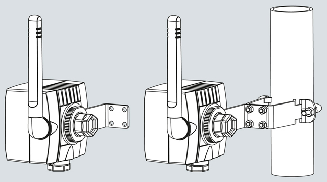 SITRANS AW200 адаптер для WirelessHART, размеры в мм (дюймах) SITRANS AW200 со встроенной монтажной скобой для крепления на стене или на трубе |