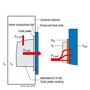 Расчет IEC 60890 (VDE 0660 Часть 507) может использоваться для определения температуры окружающей среды Tc внутри шкафа управления. При расчете следует учитывать все источники тепла в шкафу управления, например, линейные модули, модули двигателя, источники питания, фильтры, реакторы. Важно определить эффективную поверхность охлаждения, которая зависит от способа настройки шкафа управления. Для шкафов управления с вентиляционными форточками (естественная конвекция) также может использоваться стандарт. Расчетная температура Tc и распределение температуры внутри шкафа управления должны проверяться измерениями при каждом применении, поскольку в определенных местах могут формироваться так называемые «горячие точки», например, в непосредственной близости от источника тепла или участках аккумулирования тепла.