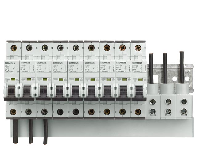 - Монтаж с помощью сборной шины и прямой ввод питания на автоматический выключатель через вводные клеммы сечением до 35 mm²