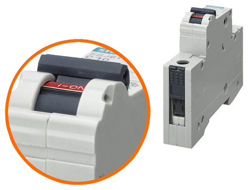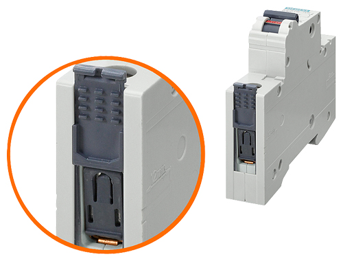 Эффективная защита от случайного прикосновения при управлении механизмом снятия/установки автомата на DIN-рейку.